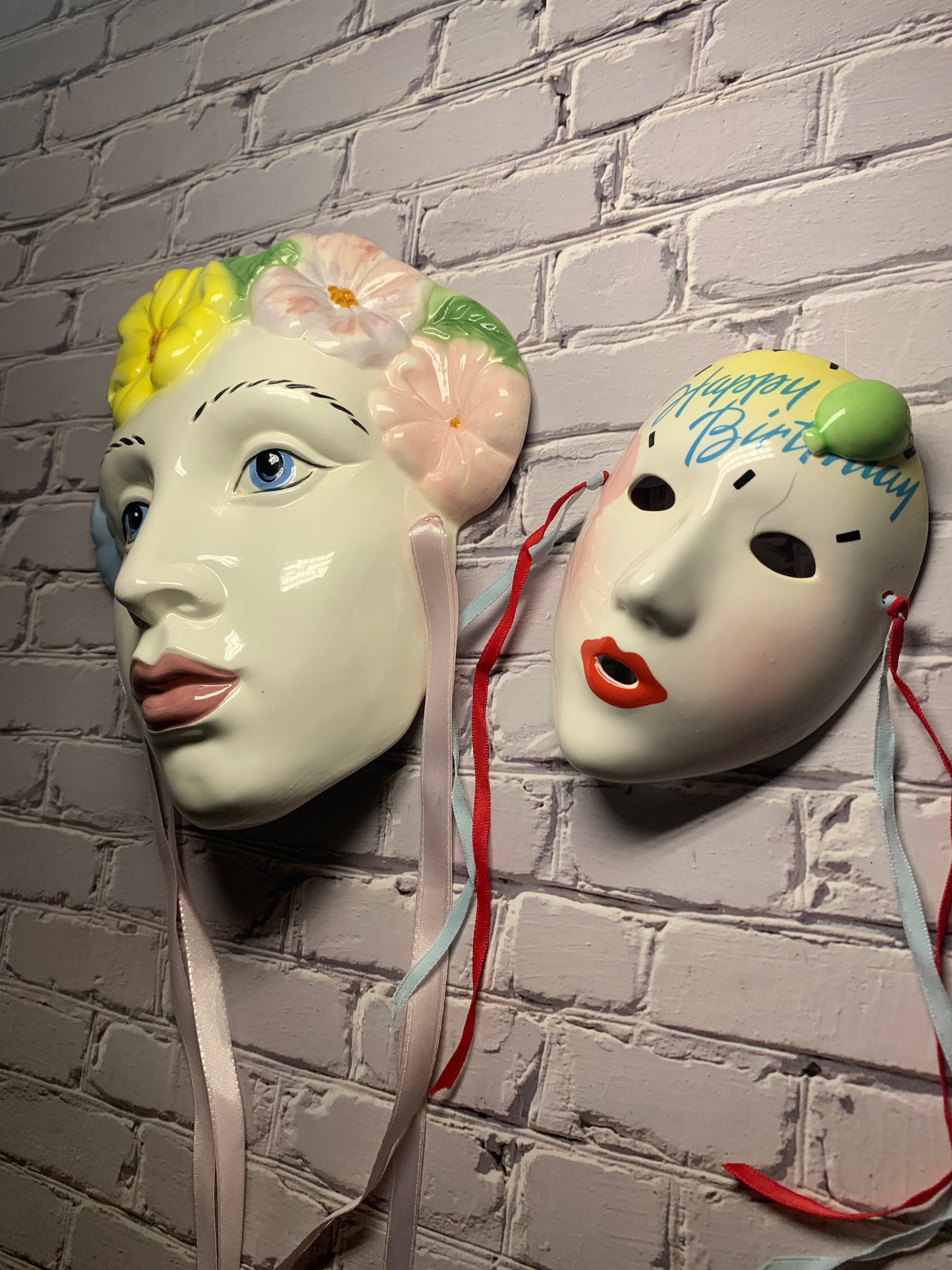 Beautiful Pair 1 Clay Art And 1 Vandor Smaller Masks Rare Etsy