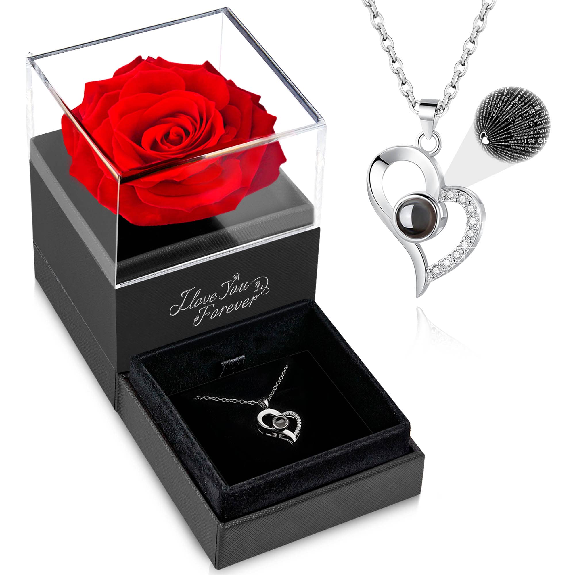 Amazon Com Wildlove Preserved Real Red Rose With I Love You Necklace In 100 Languages Birthday Gifts For Women Mom Wife Girlfriend Grandma Anniversary Romantic Gifts For Her Home Kitchen